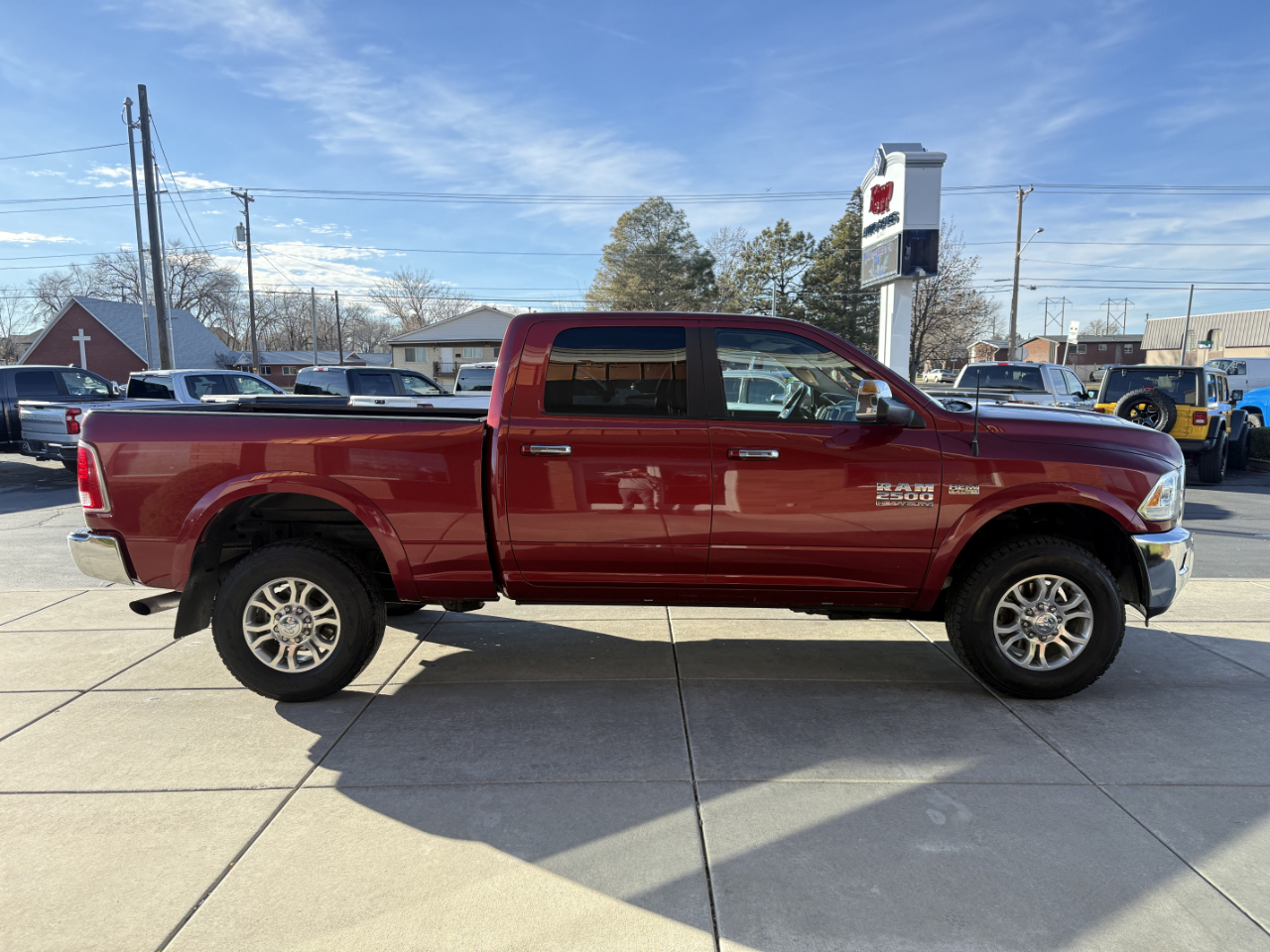 ~6.4L HEMI TRUCK WITH A CLEAN CARFAX REPORT AND GREAT SERVICE RECORDS!~ Available at our Roy Location. *FREE 3 MONTH/3,000 MILE WARRANTY* Step up and stand out in this fierce and bold Red 2014 RAM 2500 Laramie 4x4 with the 6.4L V8! This beast of a truck is ready for any job you throw its way, with a powerful engine and rugged build to handle the toughest tasks. Equipped with Part-Time Four-Wheel Drive and an impressive towing capacity, it's got the muscle to tackle any terrain or haul heavy loads effortlessly.