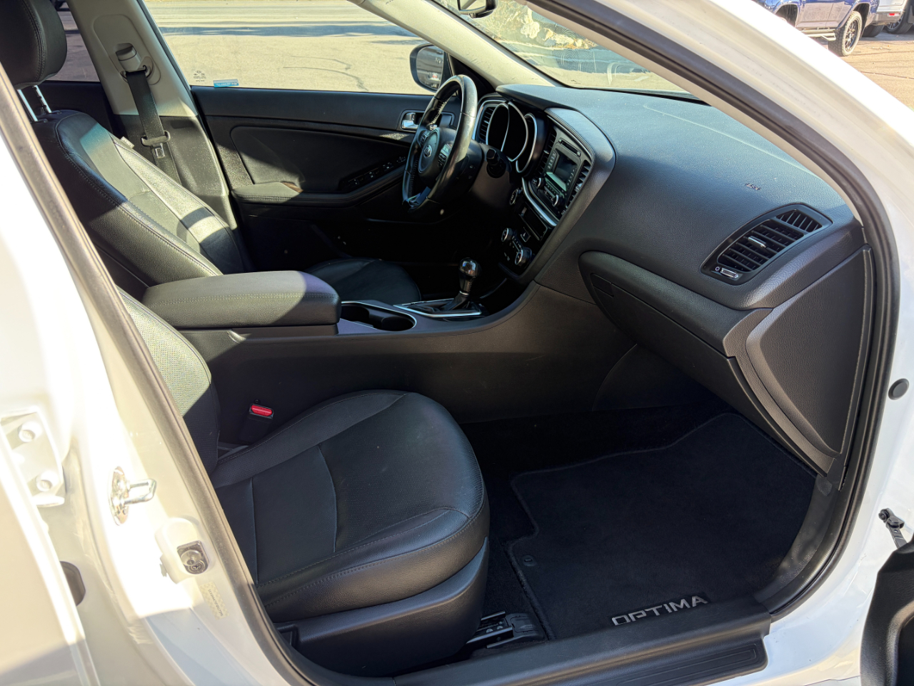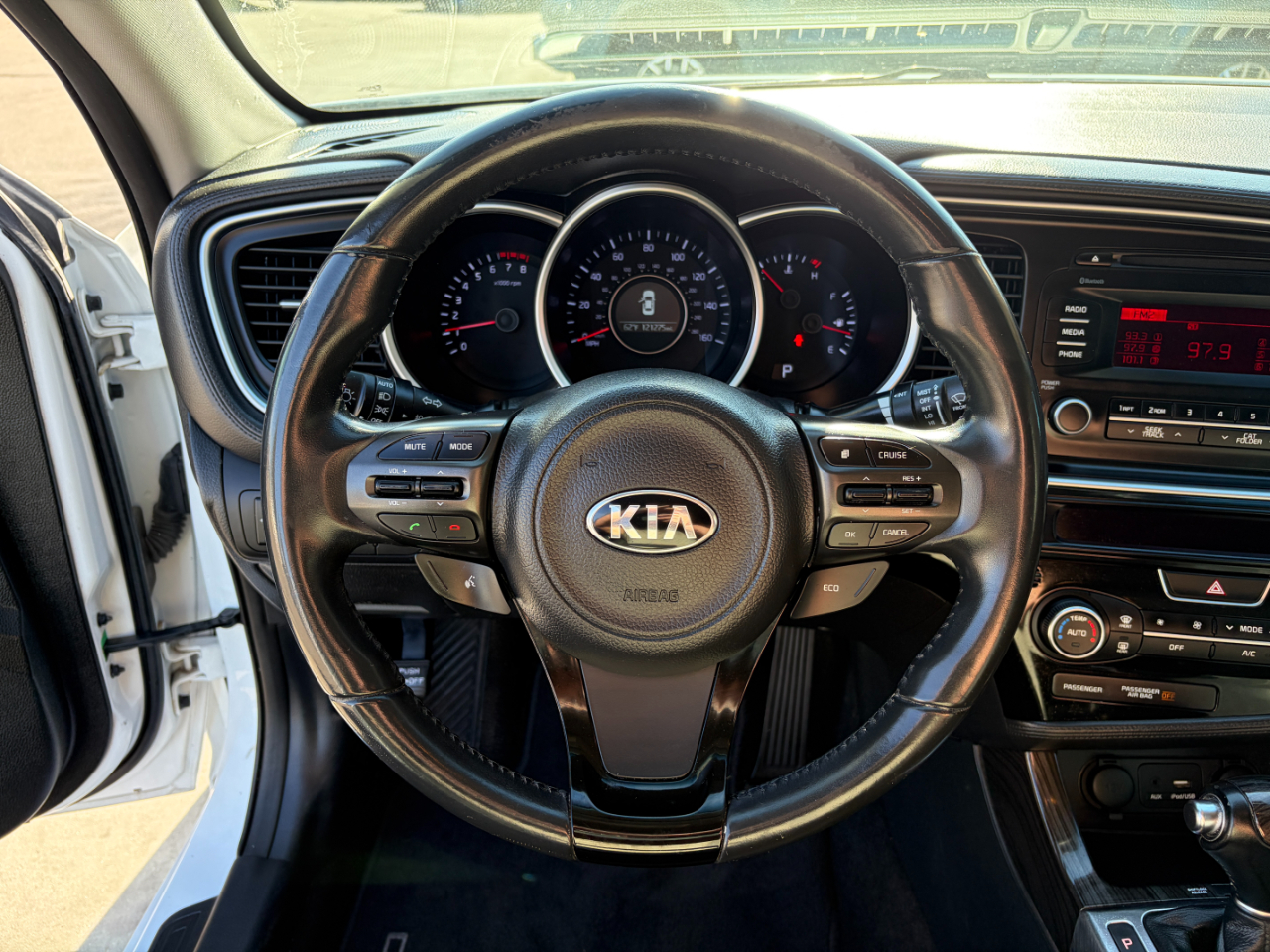 But that's not all - safety is a top priority with side impact beams, dual-stage airbags, and rear child safety locks included for your peace of mind. Plus, you can review the car's history with a Carfax report available. So why wait? Come take this White 2015 Kia Optima for a spin and experience the perfect blend of style, performance, and comfort for yourself.